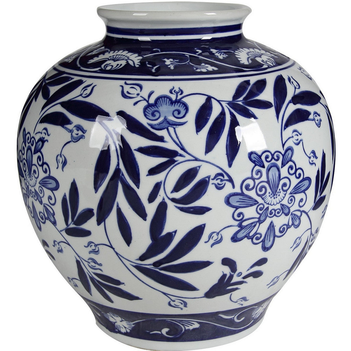 Add a pop of color and elegance to your home with the Aline Vase. The classic blue patterns on the glossy surface make it a striking addition to any interior. Made of porcelain, this versatile piece can stand alone or be paired with coordinating pieces, and can be used as a decoration or filled with flowers.
