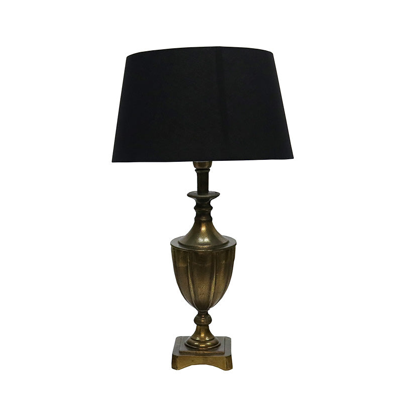 Introducing the Aluminium Urn Table Lamp – perfect for adding a magnificent touch of classic style. Crafted from aluminium and finished with an antique brass hue, this lamp is sure to make a bold impact. The accompanying black polyester shade will gracefully diffuse light for a breathtaking display of atmosphere and elegance. Create a sophisticated interior with this classic yet chic décor!