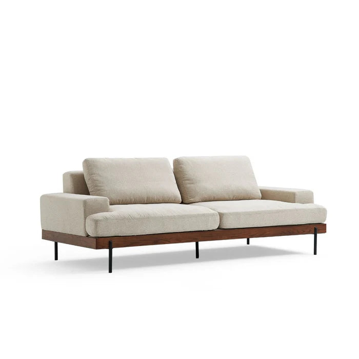 Colour: Beige Fabric, Brown Timber Framing, Black Matt Metal Legs