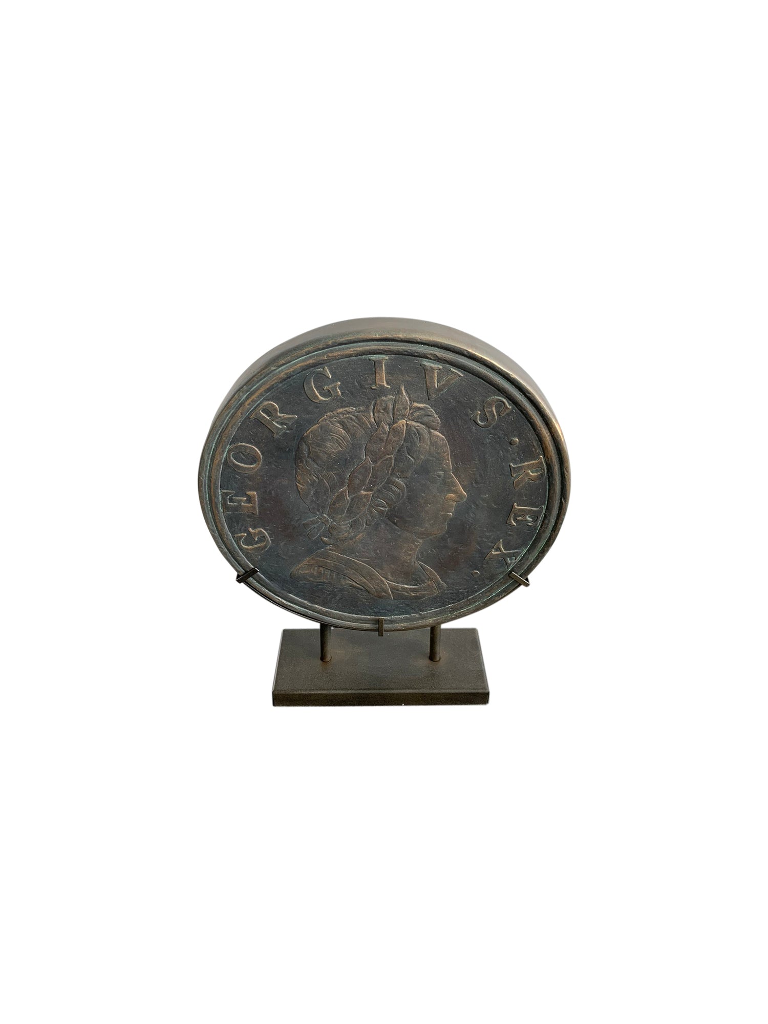 Experience the feeling of owning a piece of history with this antique old coin on stand. Skilfully crafted with polyresin, the unique grey finish gives it a beautiful, authentic look. Explore the past with this unique, attractive collectible today.