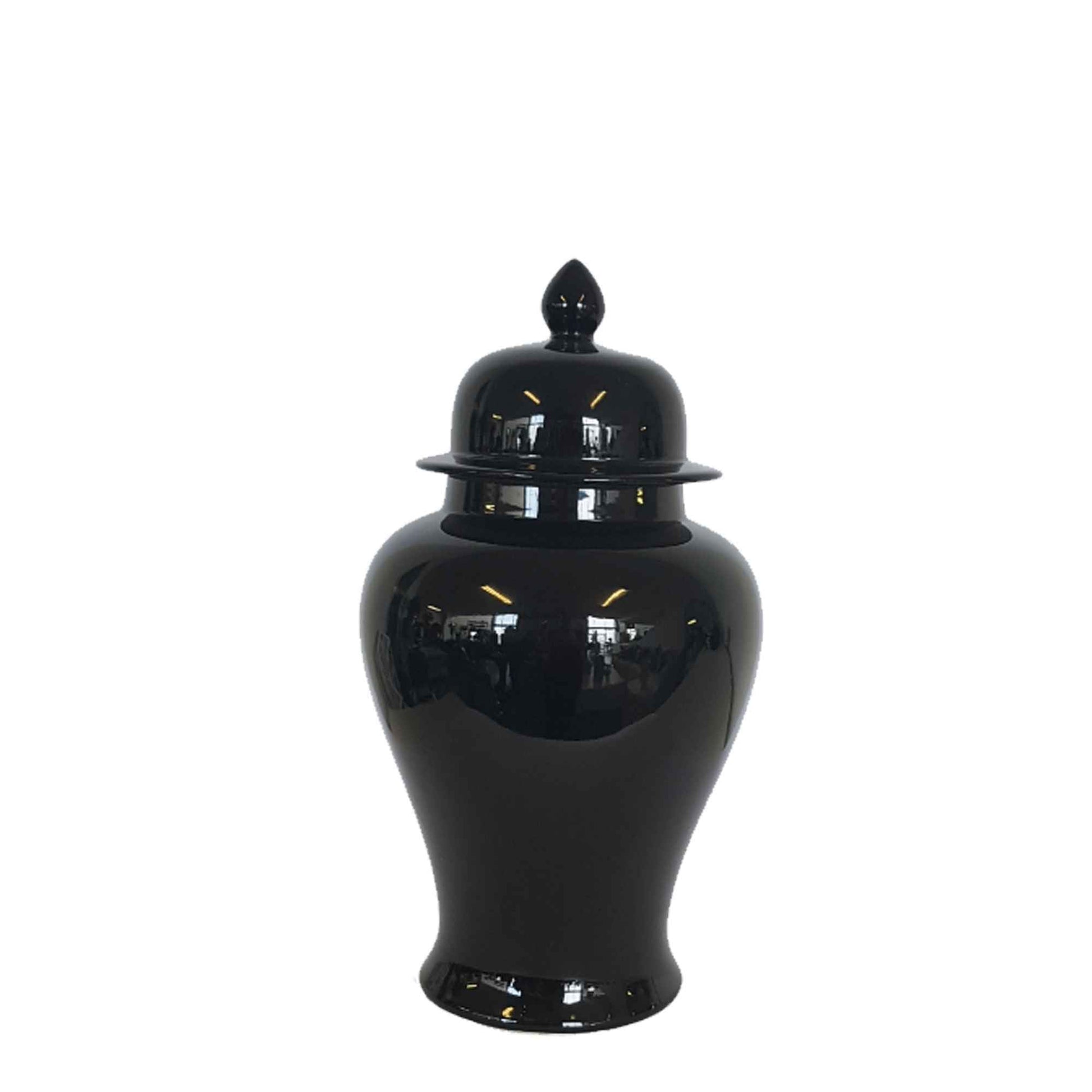 Transform any room with our elegant Black Ginger Jar. Standing at 35 inches tall, this jar adds a touch of sophistication to any space. The sleek design and glossy black finish make it a versatile piece that can fit into any decor style. Add it to your home today for a touch of timeless elegance!