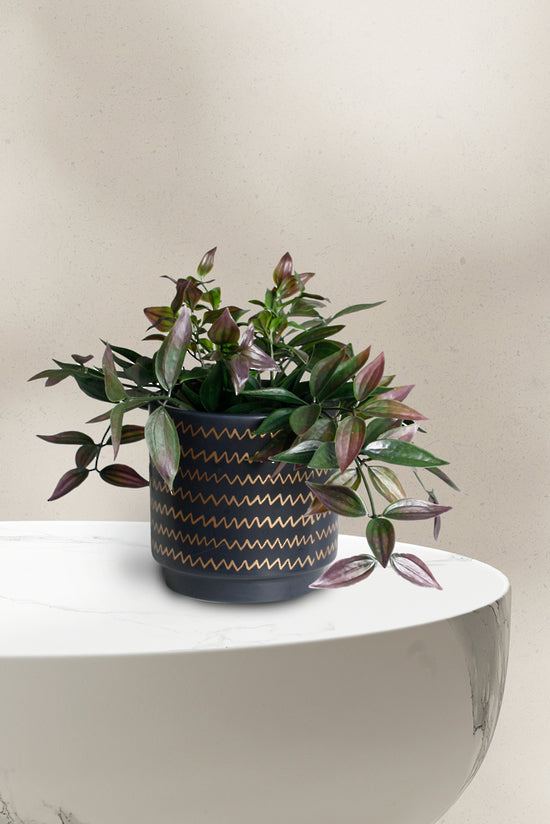 Elevate your indoor gardening game with our Black/Gold Zig Zag Planter! This beautiful large planter features a sleek zig zag design in black and gold, adding a touch of modern elegance to any space. Perfect for showcasing your favorite plants and bringing a touch of nature into your home.