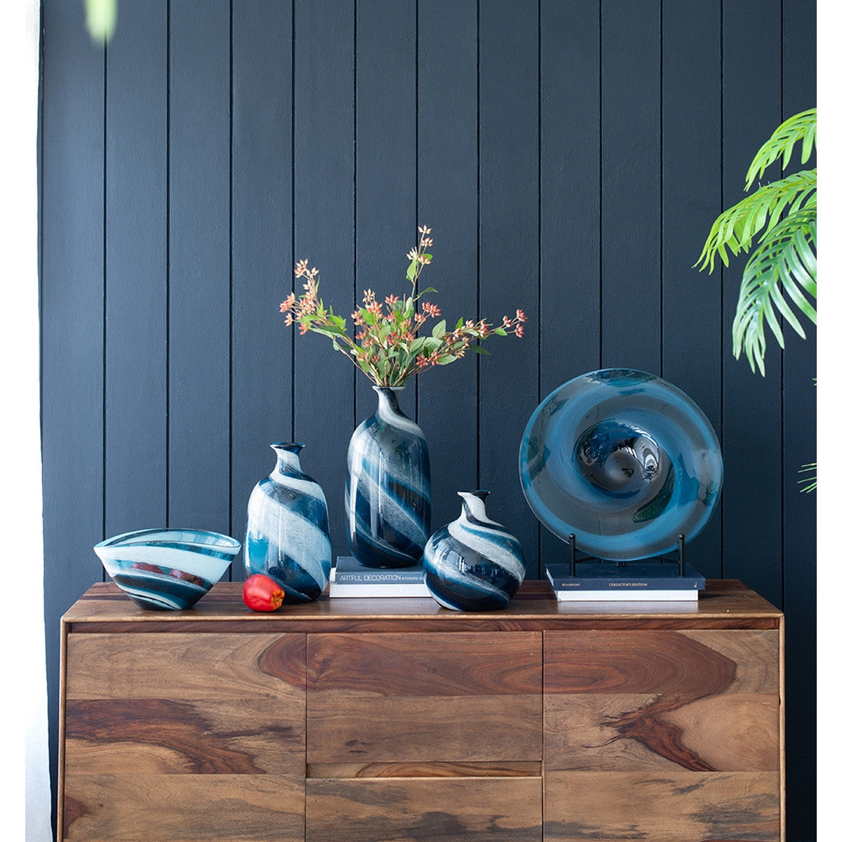Bring a touch of elegance and charm to your living space with our gorgeous Blue Glass Vase. Its sleek glass design and stunning blue hue will infuse any room with a pop of color and style. Use it to display your favorite flowers or let it stand out as a statement piece. Trust us, it's a must-have for any home.