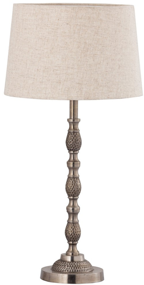 Elevate your space with our Casablanca Table Lamp. Crafted with a silver antique base and a natural linen shade, this contemporary lamp exudes timeless elegance. The textured design adds depth and the linen shade provides soft illumination. Perfect for any space in need of sophisticated lighting.