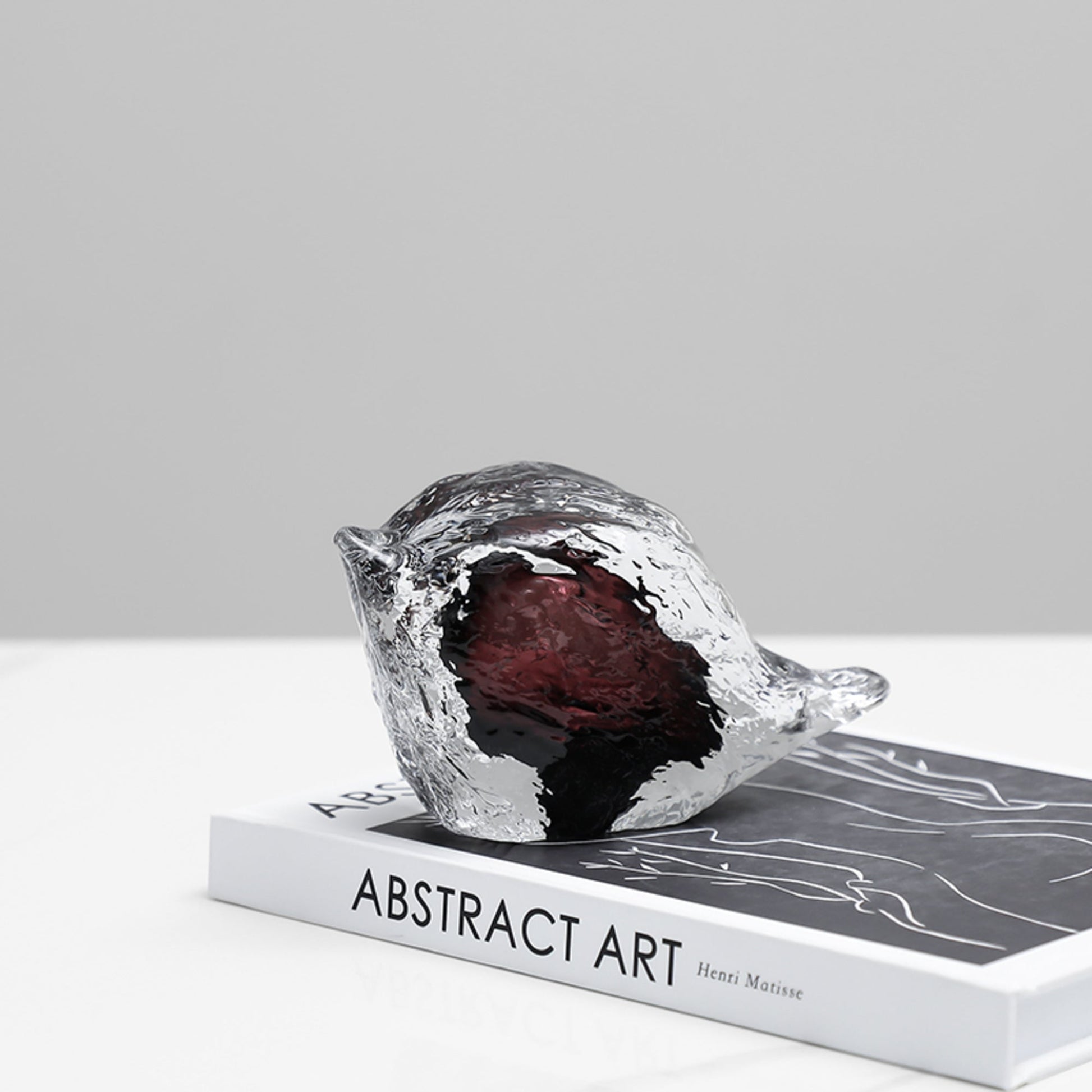 Elevate your space with our Coloured Glazed Bird. Crafted from sleek glass, this beautifully detailed piece features a striking black and clear color combination. Perfect for adding a touch of nature to your bookshelf or desk. Bring a touch of artistry to your home with this unique bird figurine.