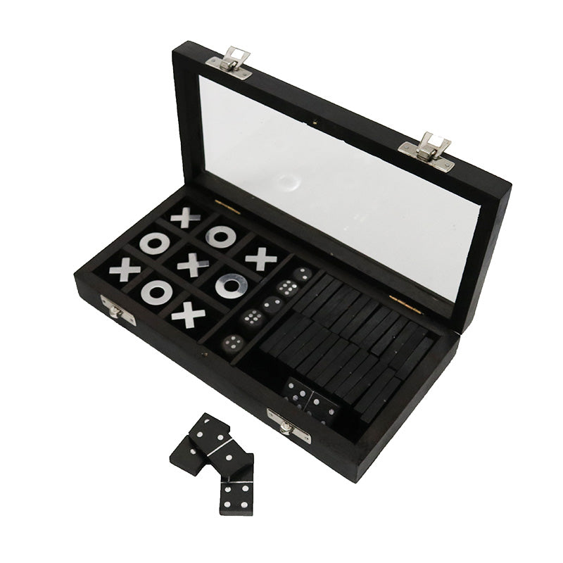 Treat yourself to an unforgettable gaming experience with this premium Domino, Dice and Tic Tac Toe set. Crafted with premium mango wood, aluminum and glass, this set is both durable and stylish. Get ready for endless hours of fun!