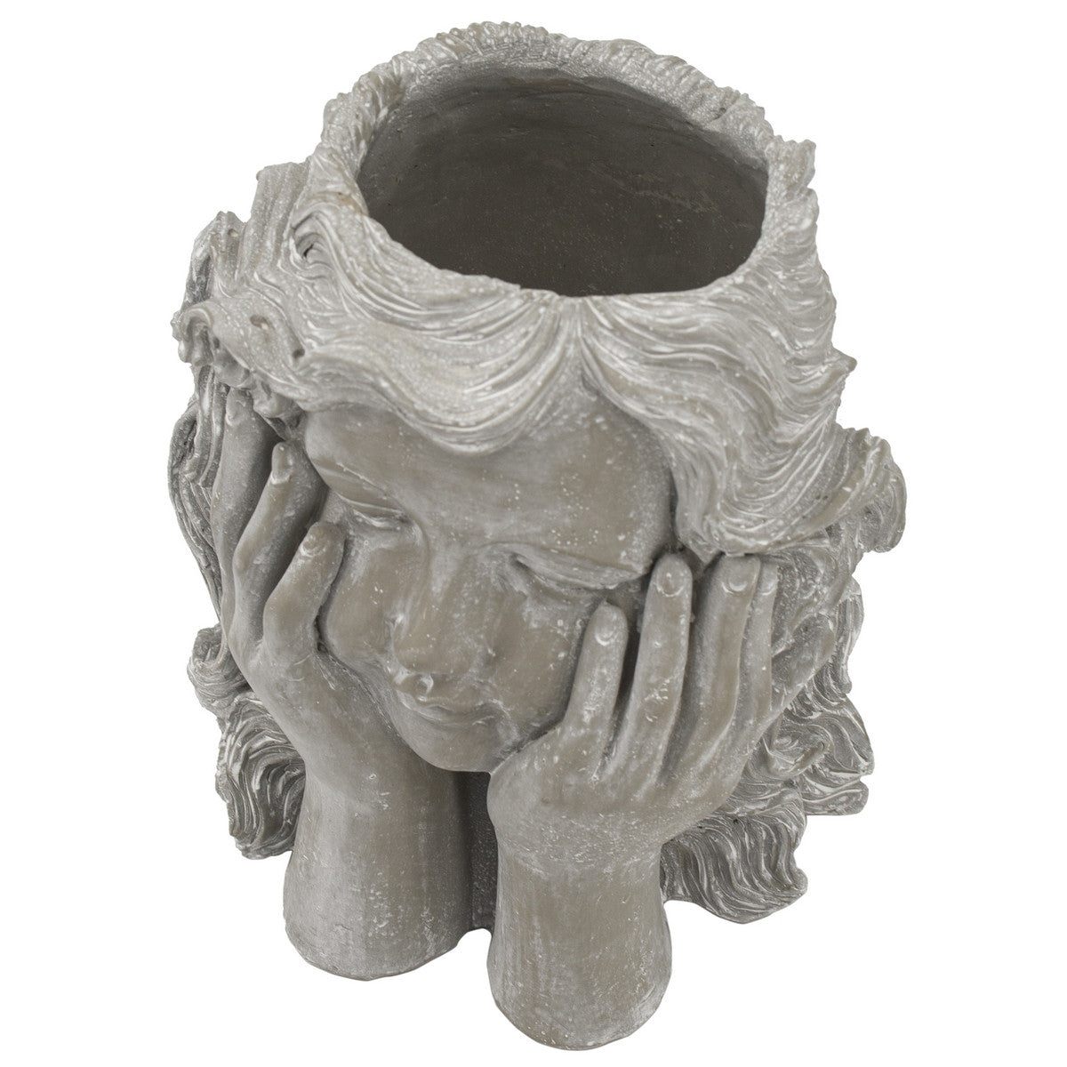 Elevate your garden with our Girl Statue Planter. This stunning cement piece features a sculpted bust of a pensive young girl, perfect for both indoor and outdoor use. Enriching any space, this planter invites you to add your favorite flowers or plants, making it an exquisite addition to your home.