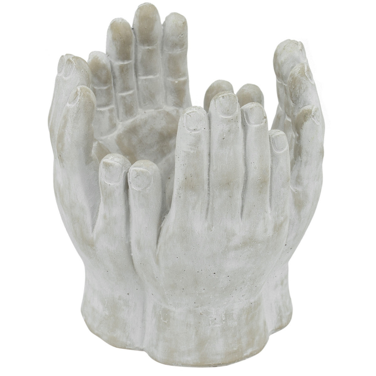 Add a touch of elegance to your home with our Hand Statue Planter. Crafted from concrete in a luxurious grey finish, this planter features two pairs of cupped hands that can hold your essentials or your favorite plants. A stylish and functional addition to any space.