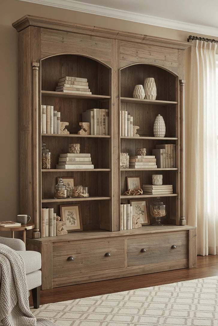 One-of-a-Kind Character: Every piece is unique, showcasing the natural knots, minor fissures, and tonal variations inherent in reclaimed wood, ensuring no two bookcases are exactly alike.