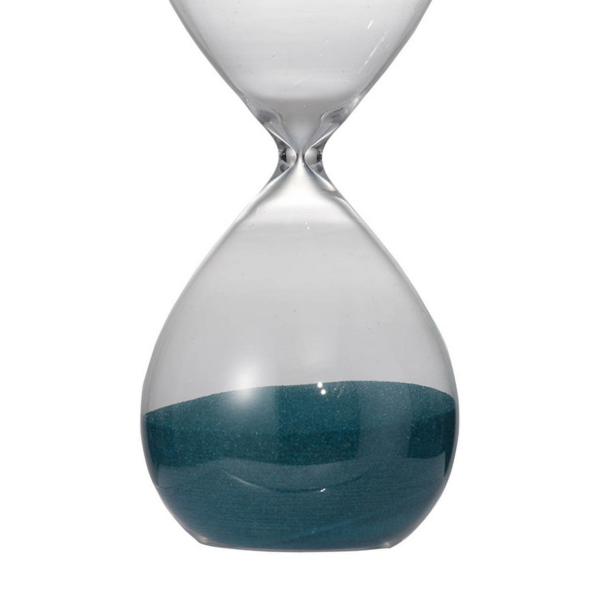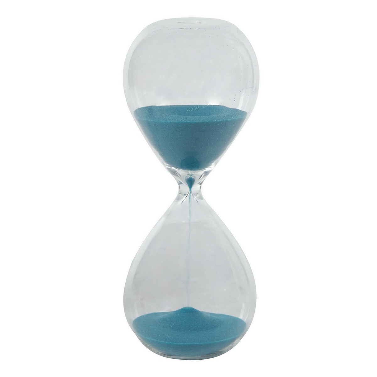 Elevate your home decor with this luxurious hourglass featuring elegant glass encasing a timeless blue sand. The perfect touch of elegance to bring a little bit of sophistication to any room. An exquisite example of craftsmanship, this hourglass is sure to last through the ages.
