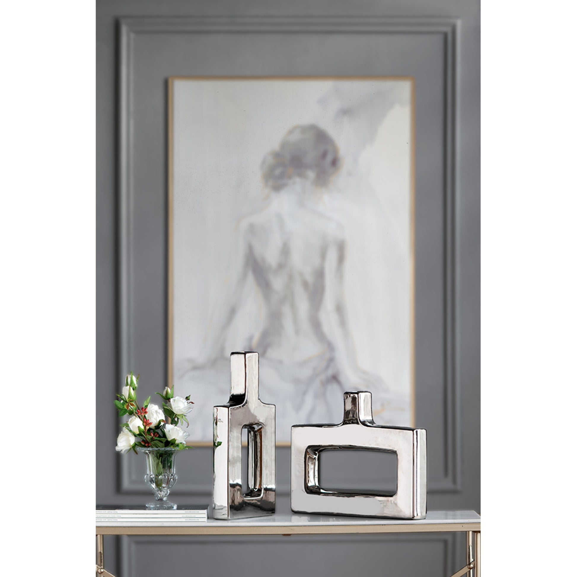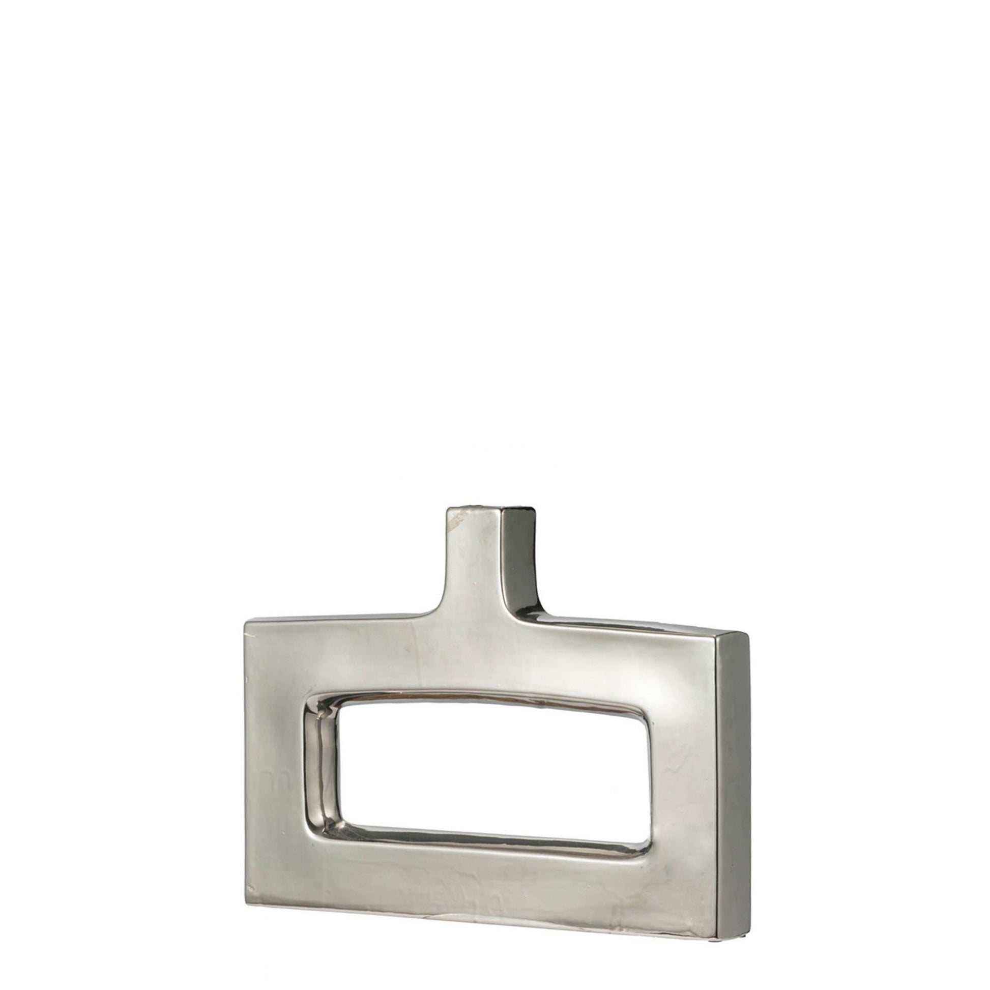 A keyhole ceramic vase in silver is a decorative vase with a keyhole cutout and a silver finish, used for holding flowers.