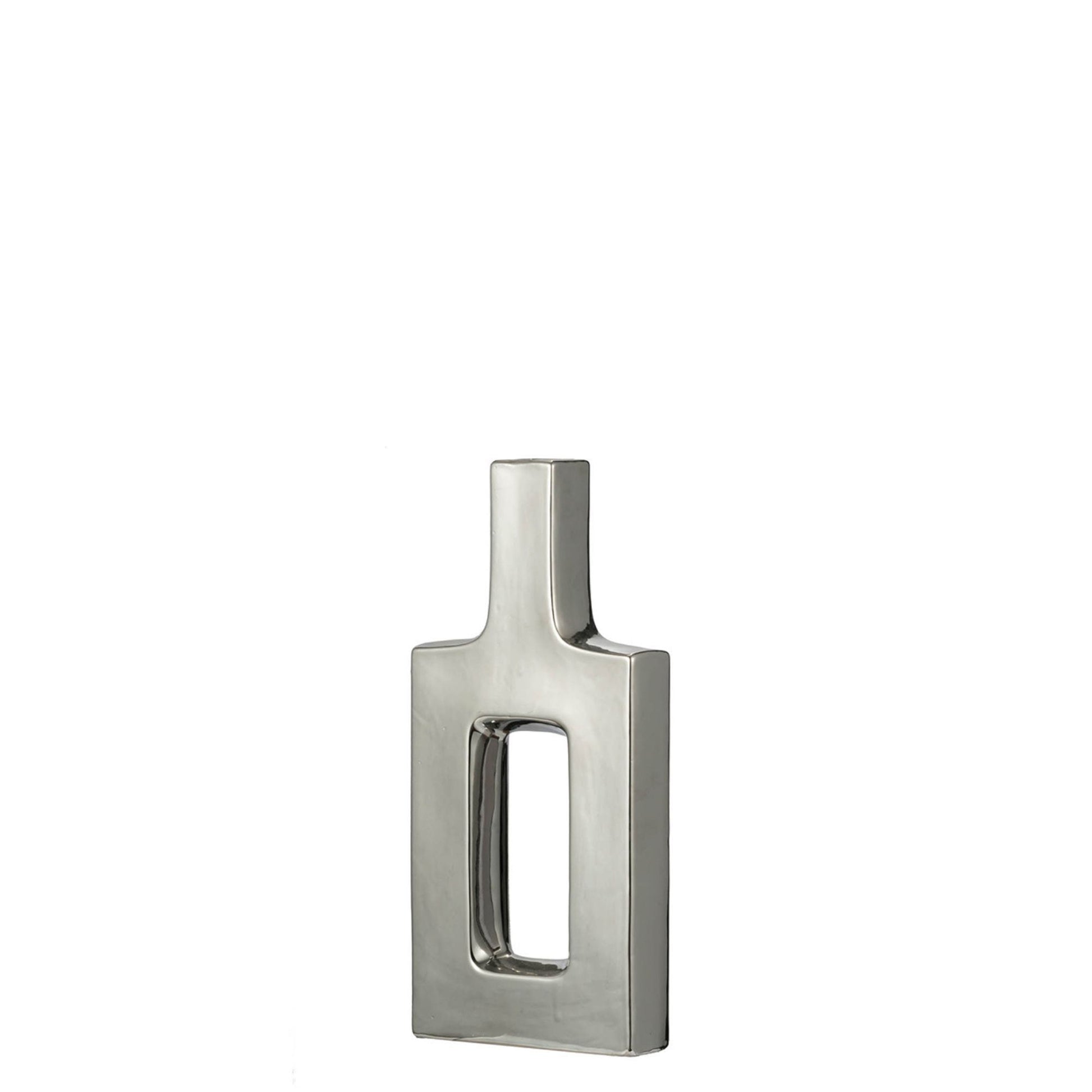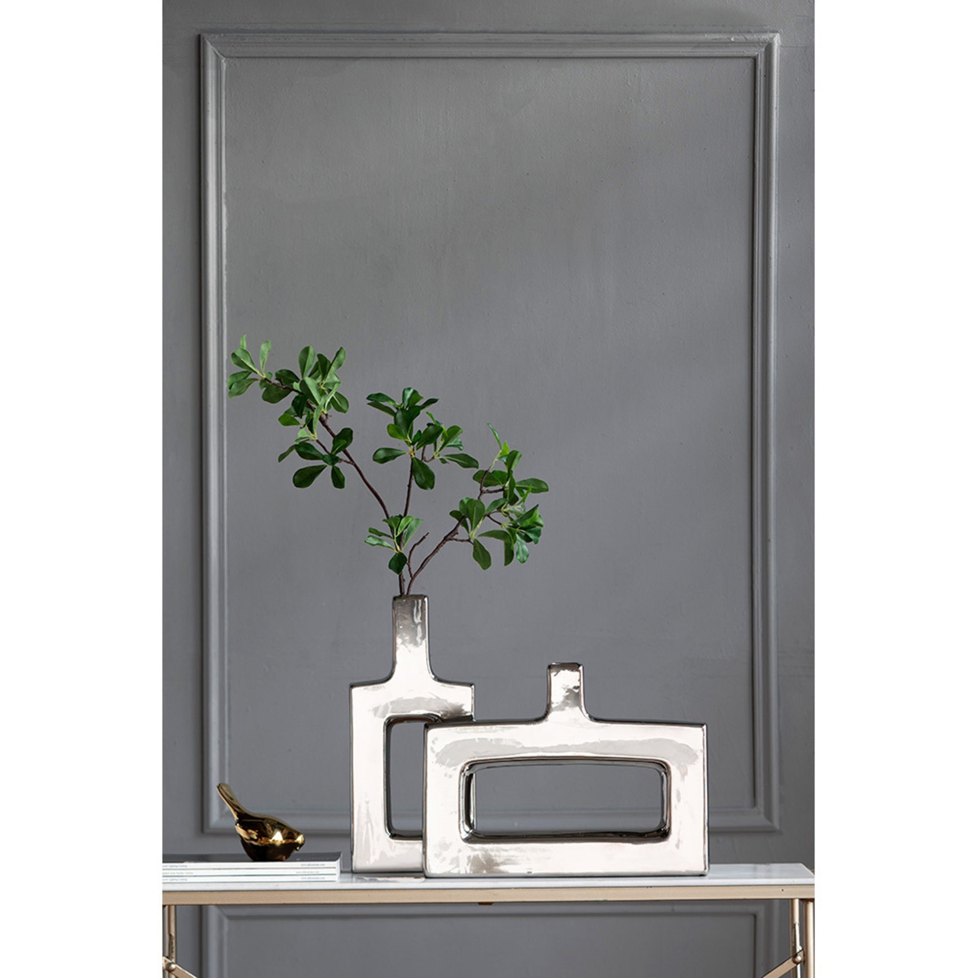 A keyhole ceramic vase in silver is a decorative vase with a keyhole cutout and a silver finish, used for holding flowers.