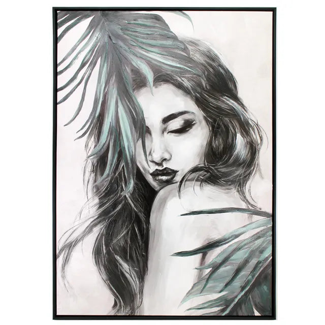 Beautiful women Art. Black and green colour combination. Ready to hang.
