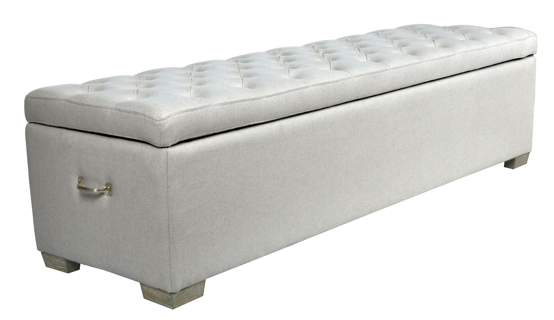 The Lionel Linen Blanket Box is the perfect piece for any bedroom. It's handcrafted from durable materials, with a timber frame and linen fabric, and features stylish and modern metal handles. Enjoy the bold, stylish look of this statement piece, as it brings a unique touch and extra storage space to your home.