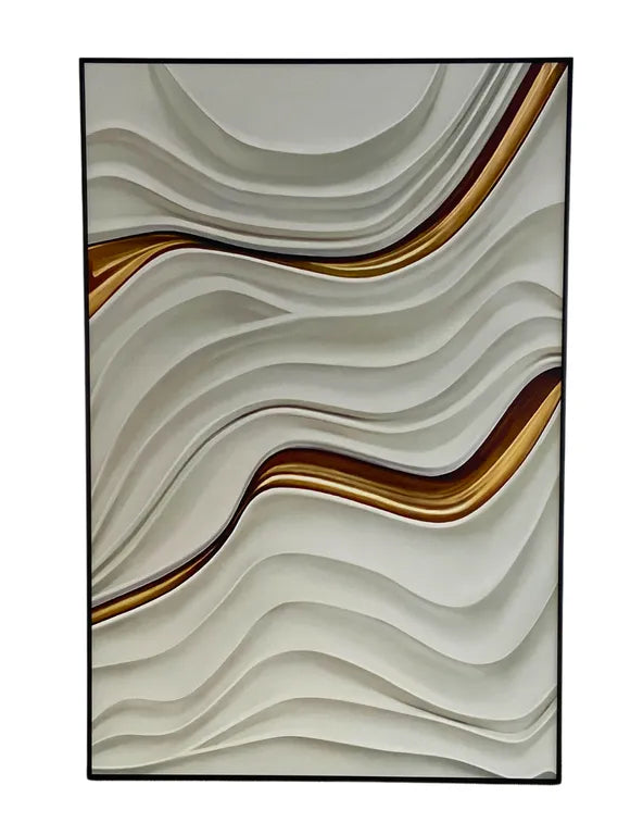 Enrapturing experience.Gorgeous golden swirls light up delicate white layers, creating an indulgent feast for your wall.This extraordinary wall art astonishes. It transcends the limits of traditional dimensions. At first sight, it defies the boundaries of a flat surface with its 3D-like allure. Stylish colour blends, highlights and shadows, along with astounding graphics, mesmerize the senses while still feeling totally flat.