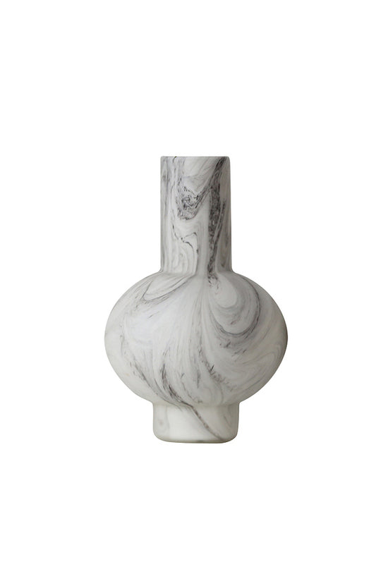 "Add a touch of elegance to your home with our Marbled Glass Vase. The unique marbled design adds a modern twist to this classic piece, making it the perfect addition to any room. The wide opening allows for versatile use, whether displaying a bouquet of flowers or standing alone as a statement piece."