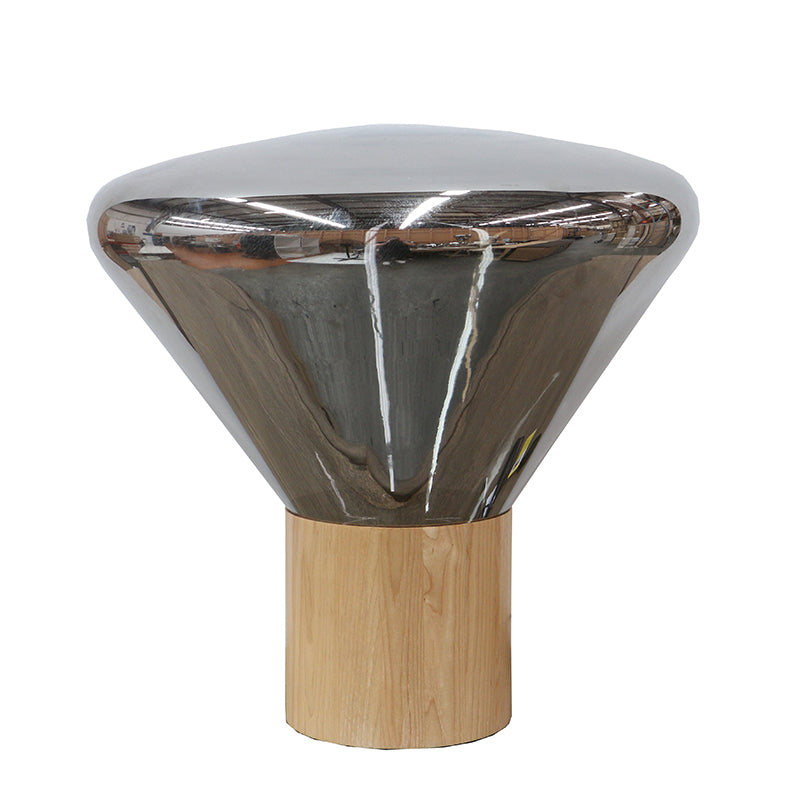 The Marco Table Lamp brings energy and class to any room with its unique blend of shades and shapes. Made of wood, glass, and metal, it features a striking smoke-and-natural colour pallet, along with a bulb-shaped base. Perfect for any home!