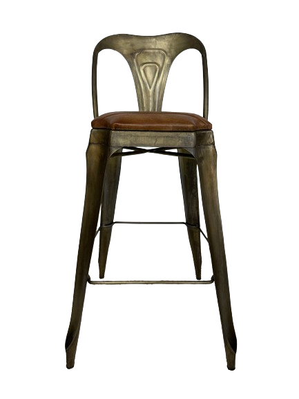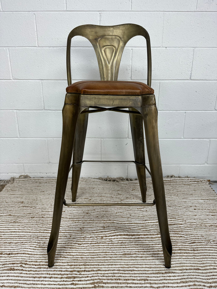 Experience comfort and style with this Mid Century Leather Barstool. An inviting genuine leather seat and sturdy bronze metal frame, make this stool perfect for your home bar or kitchen. Enjoy a luxurious seating experience with maximum durability.