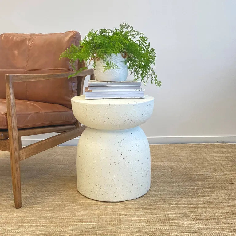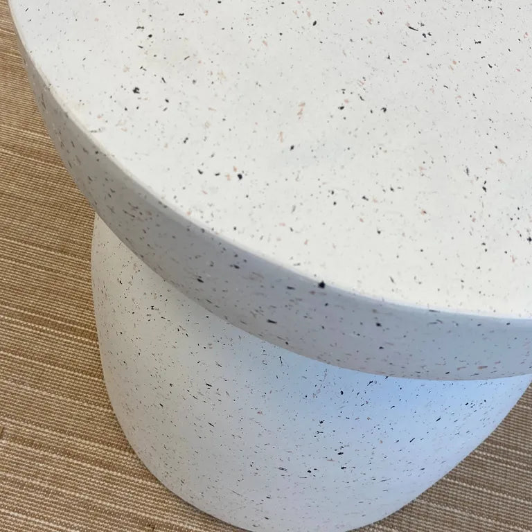 The Pedestal Side Table - White Fleck is a stylish choice to add sophisticated flair to any room. With its modern design, confident curves and generous tabletop, this side table gives you the perfect space for entertaining guests with drinks, appetizers or pot plants. Enhance your decor with modern elegance!