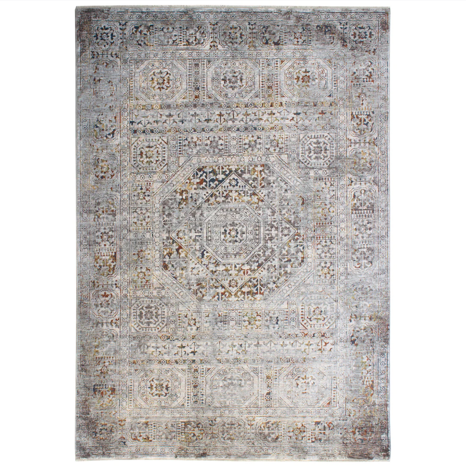 This transitional rug, with trend design will create a rich ambiance in any room. With timeless style, this rug has been expertly power loomed in Turkey to the highest standards, is easy maintenance, and is designed to last. It features a stunning, classic antique design in well balanced tones, in a silky soft, plush, non-shedding, ultra dense, polypropylene pile, for an amazing, luxurious feel under foot and is beautifully finished with an elegant cotton fringe.