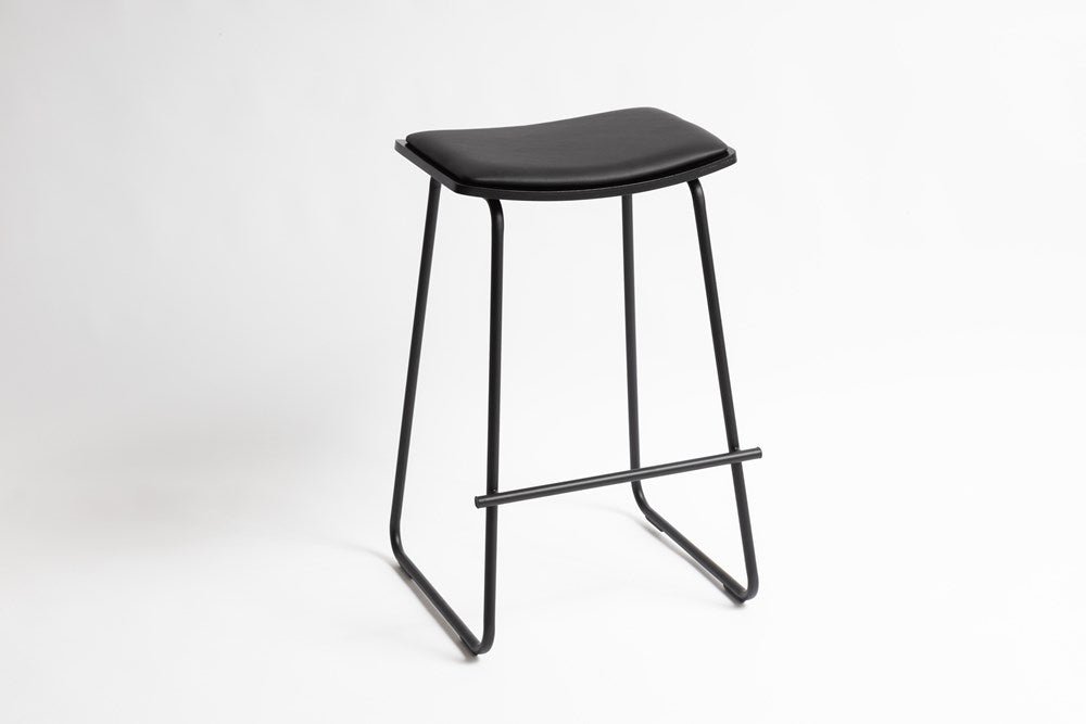 Elevate your home interior with the polished SS Barstool. Crafted from durable matte black powder-coated steel and built atop a birchwood ply base, this beautiful set of four promises reliable and luxurious comfort. The vegan leather-layered cushioning provides a luxurious feel that'll stay looking great for years to come.