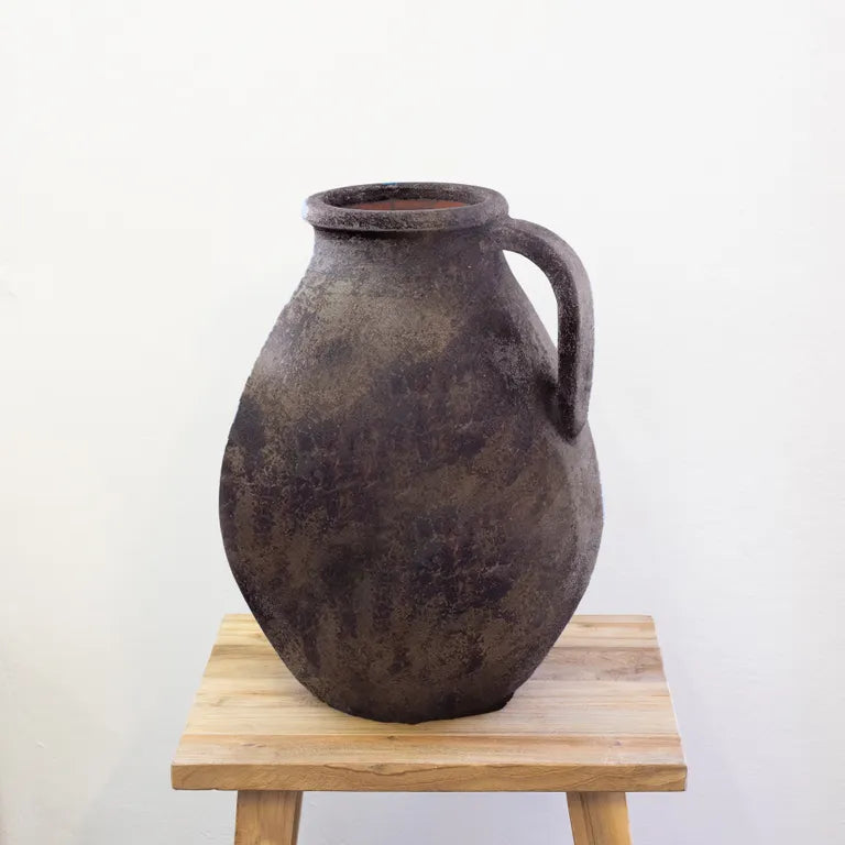 Bring a rustic, timeless charm to your home with the Terracotta Large Handled Jug - Antiqued Bronze. The beautiful terracotta and antiqued bronze give off a warm, inviting atmosphere that inspires calm and comfort. Add a touch of subtle sophistication to any room!