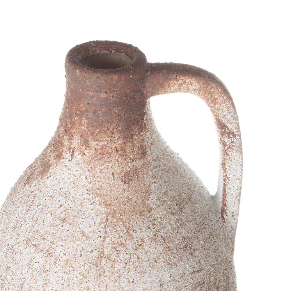 Rustic and white washed terracotta planter with handle. Durable and easy-to-carry construction, perfect for indoor or outdoor use. The elegant design makes for a great addition to any living space or garden.