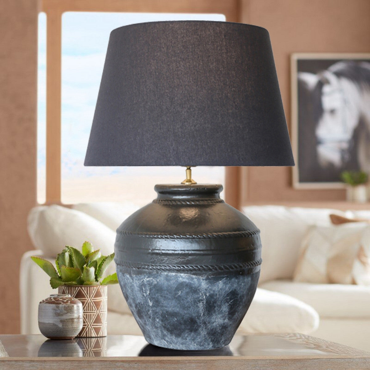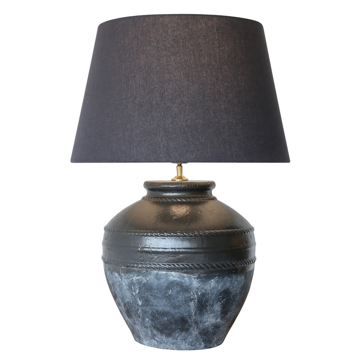 Bring a touch of modern elegance to your space with this stunning terracotta lamp. Featuring a unique black terracotta base and a black linen shade, this lighting piece will add an element of sophistication to any room. Create an inviting ambiance with the chic black color palette.