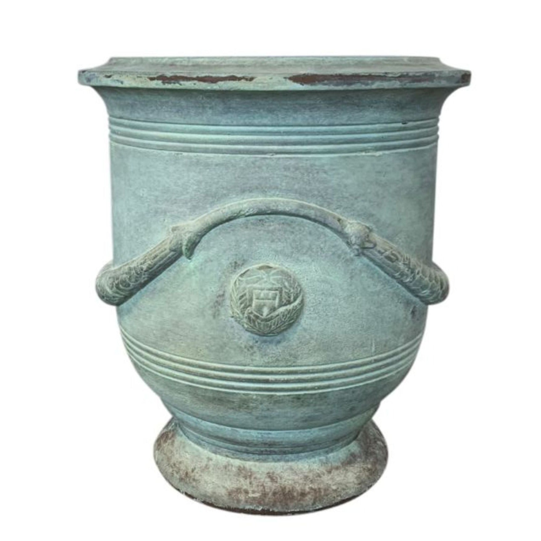 Introducing our Tuscan Planter Small, a stunning addition to any space. Crafted from a blend of crushed stone and polyresin, this planter exudes an air of sophistication and luxury. The beautiful verdigris color adds a touch of elegance, while the durable materials ensure long-lasting quality. Elevate your gardening game with this exclusive piece.