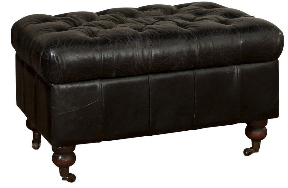 Crafted from highest quality top grain leather in a traditional style, this ottoman button top seat w/ storage is made to last. A perfect addition to any lounge, study, or living area, this ottoman in belon black shows off the warm tones of the leather and will compliment a wide variety of home décor.
