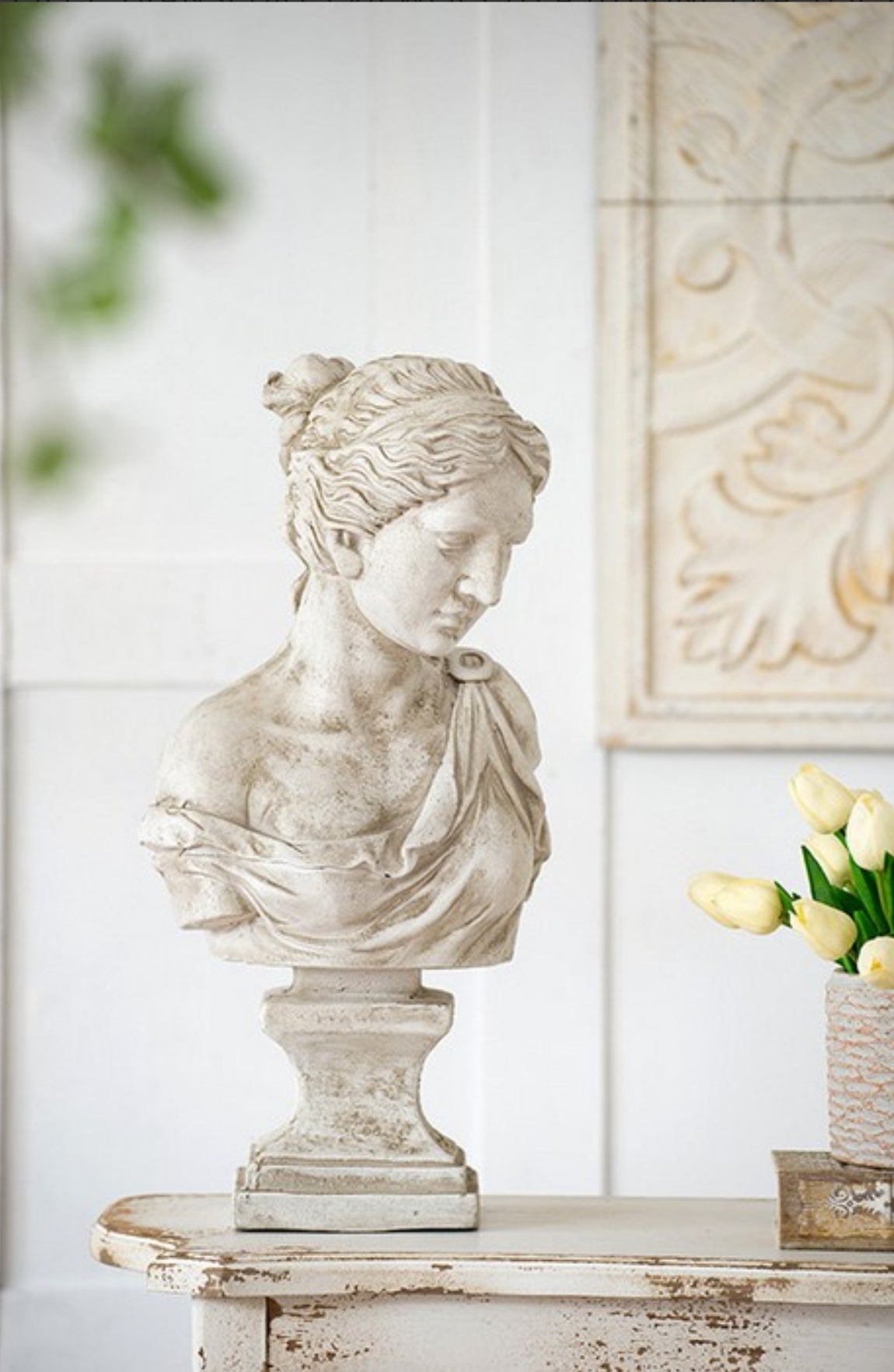 Enjoy truly traditional design with this beautiful bust sculpture. Featuring a detailed rendering of a woman in classic garb, this piece transports viewers to a bygone era. Use indoors or outdoors to bring personality to any space.