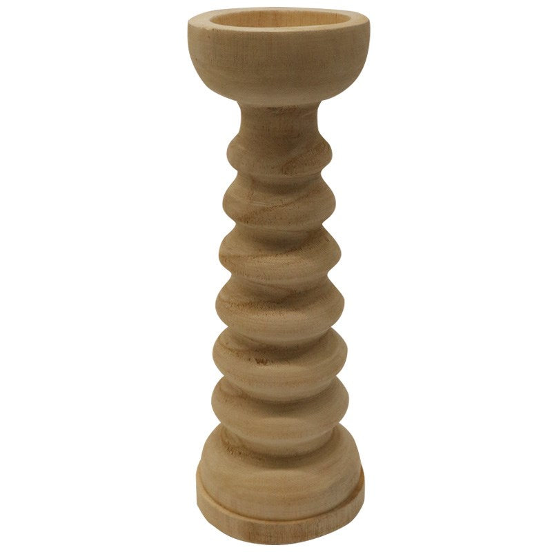 Elevate your home with timeless elegance: this Wooden Candle Holder is hand carved from fine Paulownia wood, revealing beautiful spiral designs and a natural color. Perfectly crafted for luxurious beauty.