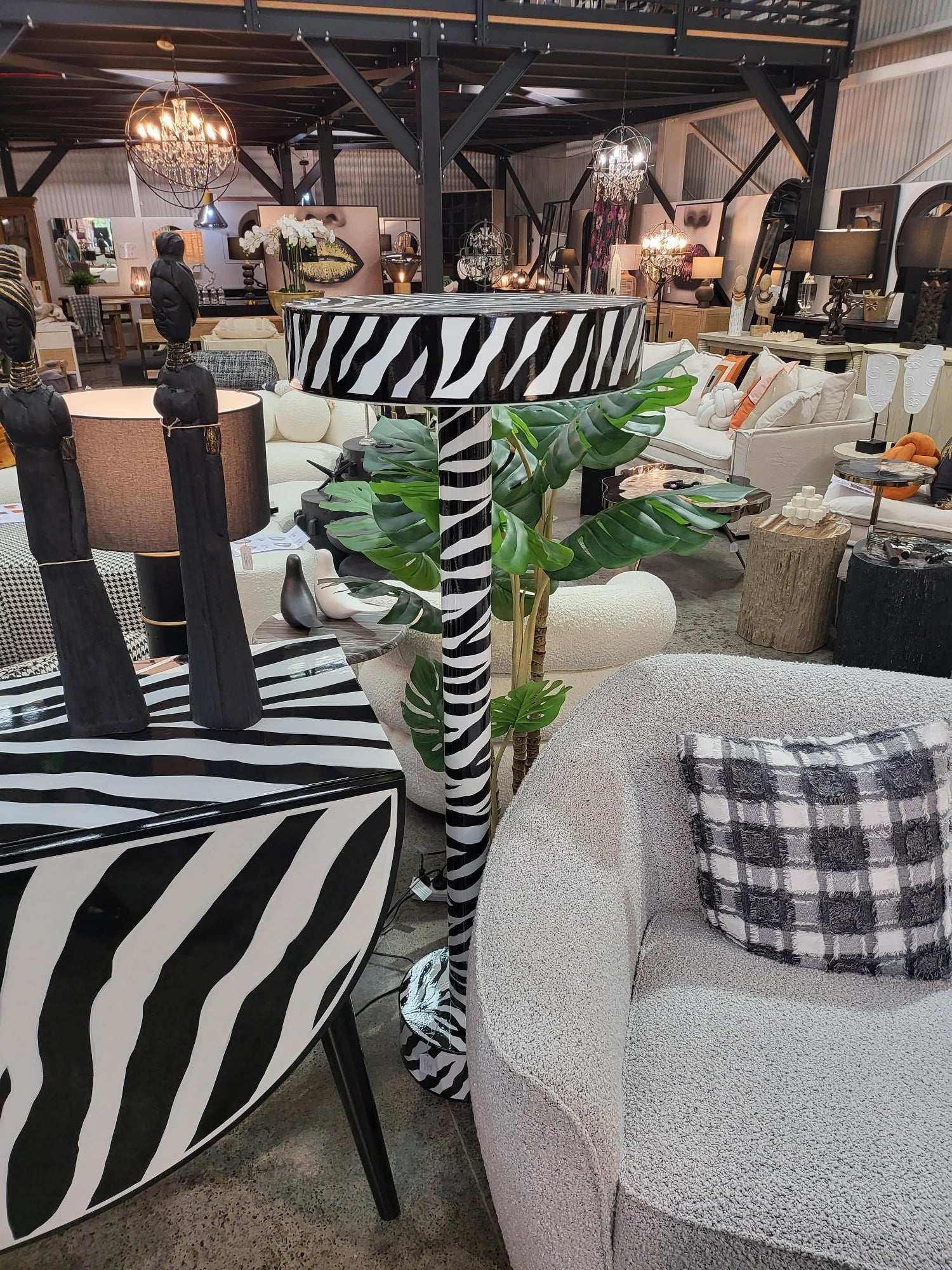 Bring wild style to your space with the Zebra Floor Lamp 140cm! The metal lamp features a striking zebra finish, adding a bold and vibrant look to your décor. Its sleek design is perfect for making a statement in any room.