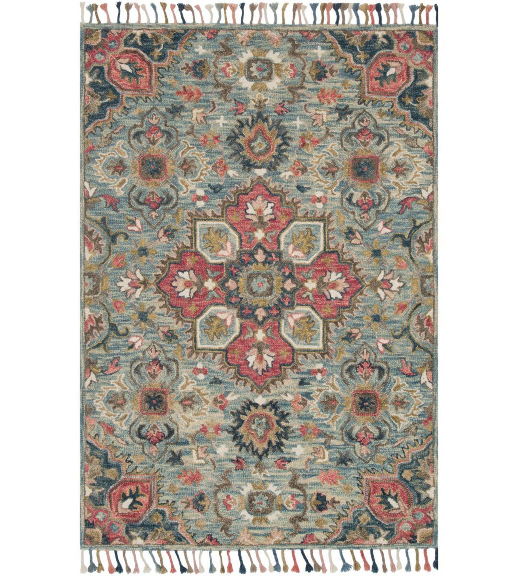 Experience the luxurious comfort and style of our Zharah Rag in Light Blue / Multi Color. Made with 100% wool pile and expertly crafted in India, this 1.5M X 2.29M rug adds a touch of elegance to any room. Transform your space with the vibrant colors and soft texture of our Zharah Rag.