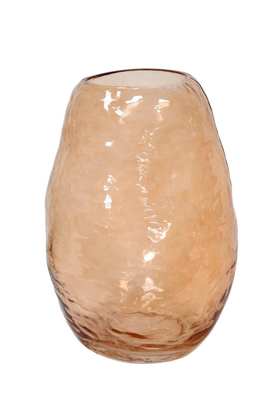 Elevate the ambiance of your home with our Zina Glass Vase in a beautiful and bold amber hue. Perfect for displaying your favorite flowers or as a standalone statement piece. Add a touch of elegance and warmth to any room.